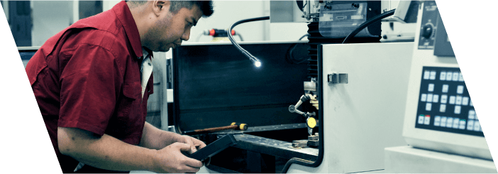 マシニング加工・ワイヤー放電加工・研磨加工の各設備 をバランスよく整え、社内一貫体制を確立。高精密・高精度の 加工技術を裏付ける品質保証にも真摯に取り組んでいる。