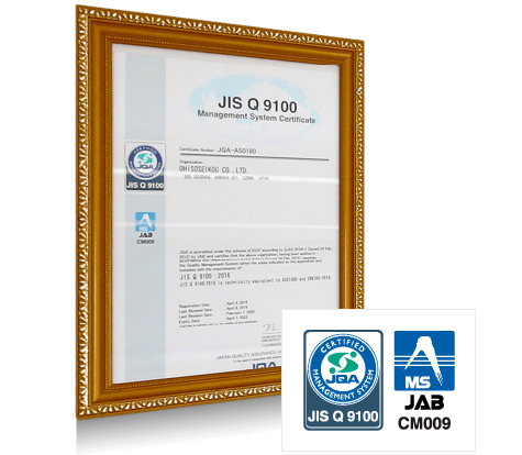 成層圏や宇宙空間といった過酷な環境や求められる安全性の高さから、通常のものづくりより高度な品質マネジメントが必要になる航空宇宙分野。「JIS Q 9100」は、そんな航空宇宙分野で使用される製品を製造するうえでの厳しい要求事項を定めたマネジメント規格である。この規格は、航空宇宙産業におけるグローバルな部品調達基準にもなっている。私たちはこの認証取得により、品質に関する社員の意識をいっそう高めるとともに、マニュアル管理やトレーサビリティの徹底、継続的改善を積極的に推進している。