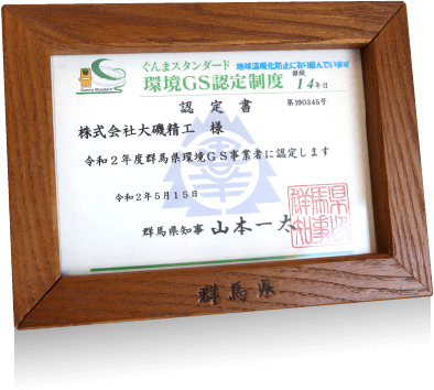 あらゆる分野で地球温暖化防止に向けた活動が求められる今、温室効果ガスを持続的に削減するためのPDCAを行う体制を築いた事業者が社会的に評価されるよう群馬県が支援するために設けた認定制度。私たちが申請した削減プランは、県によって広く社会に公表されるとともに、その取り組み結果を分析して改善点を県に報告。その報告も公表される。年単位で、この活動を継続的に行い、温室効果ガスを着実に削減する実効を上げている。