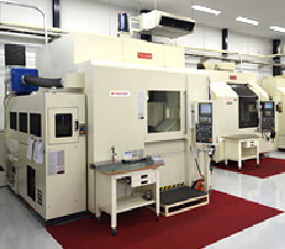 マシニング加工・ワイヤー放電加工・研磨加工の各設備をバランスよく整え、社内一貫体制を確立していることが当社の強み。フルラインナップの生産体制により、切削、熱処理、研摩、表面処理はもとより、高精密・高精度の加工技術を裏付ける品質保証にも真摯に取り組んでいる。
