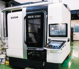 マシニング加工部門にはYASDAやDMG MORIなどの各種マシニングセンタがあり、CAD/CAM作成のNCプログラムにより高精度加工を安定実現。高能率同時5軸加工機をはじめ常により良い機種を導入し、加工工程・治具製作の削減によるリードタイムの短縮も目指している。