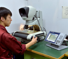 そして検査室にはCNC三次元測定機をはじめ画像測定器、測定顕微鏡、真円度測定器、表面粗さ測定器などの各種計測機器を設備。私たちの高精度主義を完結するために、各工程で逐一ミクロン単位の誤差と向かい合っている。