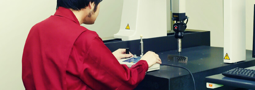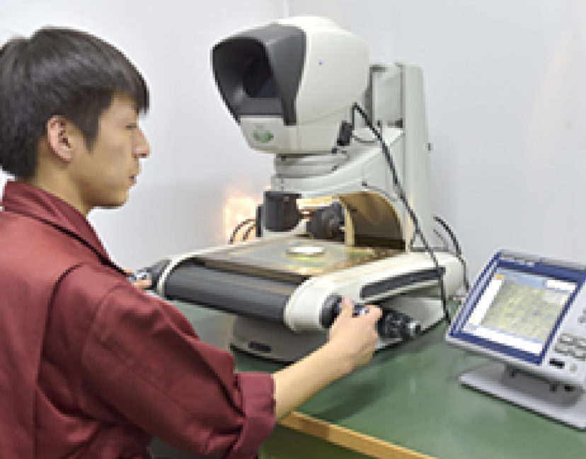 とりわけ超高精密・超高精度の加工技術を裏付ける品質保証体制の確立に、何より熱意をもって取り組んできた。計測機器にも世界水準を求め、CNC三次元測定機をはじめ画像測定機、測定顕微鏡、真円度測定器、表面粗さ測定器などを駆使してミクロン単位の誤差を追う。そしてこれらの機器は、すべての技術者が使いこなすことも私たちの日常。高い完成精度のために各工程において測定を徹底し、常に精度をチェックしながら加工に向き合っている。