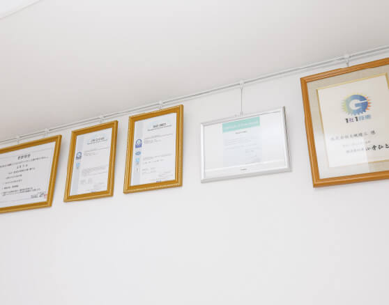 また最終検査室では、専属の検査員が出荷前検査を実施。測定データを付して、製品は送り出される。こうした高精度主義に徹した私たちの取り組みは、航空宇宙分野における品質マネジメントシステム「JIS Q 9100」や国際標準規格である「ISO9001」の認証取得に結実している。